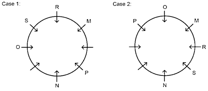 Direction: Study the following information to answer the given questions: Eight persons M, N, O, P, Q, R, S and T are sitting around the circular table facing towards the center. M sits third to the right of N. R sits adjacent to M. O sits second to the right of R. P is not adjacent to R. S sits opposite to P. T is adjacent to neither Q nor N.