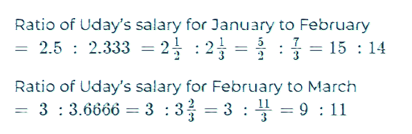 Ratio of Uday’s salary for January to February to March = 135 ∶ 126 ∶ 154
