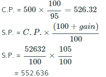 1. A person sold an article for Rs.500 and incurred a loss of 5%. In order to earn a profit of 5%. Find its selling price?