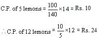 2. A vendor sells lemons at the rate of  5 for Rs.14, gaining thereby 40%. For how much did he buy a dozen lemons?