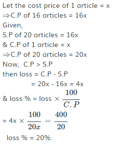 6. If the cost price of 16 articles is equal to the selling price of 20 articles. Find the gain or loss %.