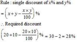 7. Successive discounts of 10% and 20% are equivalent to a single discount of :