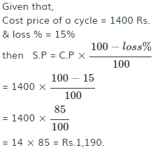 2. A man buys a cycle for Rs.1,400 and sells it at a loss of 15%. What is the selling price of the cycle?