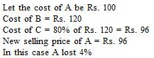 6. A sells an article to B at 20% profit and B sells to C giving a discount of 20%. If A had sold it direct to C at the same price paid by C, then the gain or loss percent of A is?
