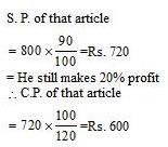 9.A dealer offers a discount of 10% on the marked price of an article and still makes a profit of 20%. If its marked price is Rs.800, then the cost price of the article is?