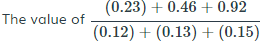 Algebraic Simplification Test 2 Welcome to your Algebraic Simplification Test 2 Question No.1 A bag contains an equal number of one rupee, 50 paisa and 25 paisa coins. If the value of money in the bag is Rs.35, find the total number of coins of each type? A. 7 B. 40 C. 30 D. 20 E. None of these None Question No.2 What is the difference between the local value of 7 and 5 in the number 2,574? A. 430 B. 570 C. 403 D. 413 E. None of these None Question No.3 A. B. C. D. E. None of these. None Question No.4 A. B. C. D. E. None of these. None Question No.5 A. 1 B. 2 C. 4 D. 6 E. None of these. None Question No.6 Solve:0.21 x 21 – 0.00021 + 0.021? A. 2.43079 B. 3.43079 C. 4.43079 D. 5.43079 E. None of these. None Question No.7 The value of 8.4 x 8.4 + 2 x 8.4 x 6.9 + 6.9 x 6.9? A. 224.09 B. 234.09 C. 244.09 D. 254.09 E. None of these None Question No.8 A. 4/9 B. 5/9 C. 7/9 D. 8/9 E. None of these. None Question No.9 A. 4/9 B. 5/9 C. 7/9 D. 8/9 E. None of these. None Question No.10 A. 0.025 B. 1.025 C. 3.025 D. 4.025 E. None of these. None Question No.11 A. B. C. D. E. None of these. None Time's up