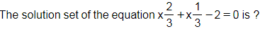 Quadratic & Other Test 2 Welcome to your Quadratic & Other Test 2 Question No.1 A. 20/27 B. 27/20 C. 6/8 D. 8/6 E. None of these None Question No.2 A. 64 B. 194 C. 81 D. 124 E. None of these None Question No.3 A. 0 B. 1 C. 2 D. 3 E. None of these None Question No.4 A. -1 B. 1 C. 2 D. 0 E. None of these None Question No.5 In a plane, P and Q are two points having co-ordinate (3, 0) and (6, 4) respectively. Then the numerical value of the circumference of circle with radius PQ is: A. 8π B. 6π C. 12π D. 10π E. None of these None Question No.6 A. 8, 1 B. 8, – 1 C – 8, – 1 D. –8, 1 E. None of these None Question No.7 Find a quadratic equation in x whose roots are 5 and 6. A. x2+ 11x + 30 = 0 B. x2- 11x - 30 = 0 C. x2 - 11x + 30 = 0 D.x2+ 11x - 30 = 0 E. None of these None Question No.8 The range of values of m for which the roots of the equation 3x2 + 2x + m(m − 1) = 0 are of opposite sign? A. (− ∞, 0 ). B. (0, 1). C. (1, ∞ ). D. (0, ∞ ). E. None of these None Question No.9 If b and c are the roots of the equation x2 + bx + c = 0 then. A. b = 1 B. b = 1 or 0 C. 6 = -2 D. b = -2 or 0 E. None of these None Question No.10 If (x + y - z)2 + (y + z - x)2 + (z + x - y)2 = 0, then the value of x + y - z is? A. √3 B. 3√3 C. 3 D. 0 E. None of these None None Time's up