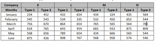 What was the respective relation between the number of items of type-2 produced by Company-M in the month of May and the number of items of type-l produced by Company-L in the month o