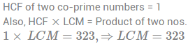 2. The product of two co-prime number is 323. Their LCM should be-