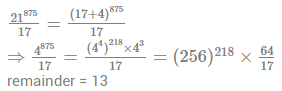 11. What is the remainder when 21875 is divided by 17 ?