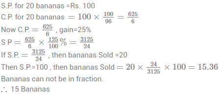 14. By selling bananas at 20 for Rs. 100, a man loses 4%, In order to gain 25%, how many for Rs. 100 must he sell ?