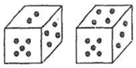 13. Study the two different positions of a cube given below with dots from 1 to 6 marked on its faces. Find out how many dots are contained on the face opposite to that containing 3 dots.