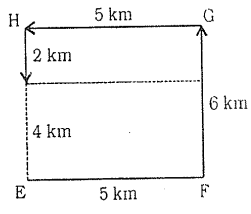 14. Rahim travelled straight from point E to F at a distance of 5 km. From F he turned left and travelled 6 km and reached point G, there he took a left turn and travelled 5 km to reach point H. He took another left turn and travelled 2 km and reached point I. How far is he from the starting point?