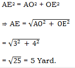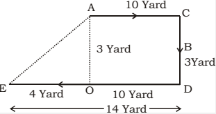 105. Reena travelled from point A to a distance of 10 yards east at point B. She then turned right and walked 3 yards. Again she turned right and walked 14 yards. How for is she from starting point.