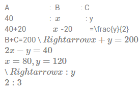 110. A,B and C has 40,x and y balls respectively.If B gives 20 balls to A then he has half the balls of C. If they all have 60 balls more then all have average 100 balls. The ratio of x and y is: