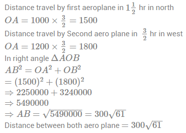115. An aeroplaneflews in north from an airport at 1000 km/hr. At the same time another aeroplaneflews from the same airport in west at 1200 km/hr. The distance between both aeroplane after 1½ hr is :
