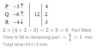 116. Two pipes P and Q fill a tank in 3 min and 6 min respectively while the other pipe R can empty the full tank in 4 hr. All the pipes are opened together and after 2 min. Pipe R is closed, then the tank will in :