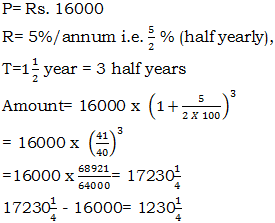 106. If the interest is compounded half yearly, then interest on Rs. 16000 at 5% per annum, at the end of 1½ years is.