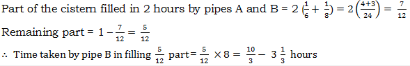 110. Pipe A can fill a cistern in 6 hours and pipe B can fill it in 8 hours. Both the pipes are opened simultaneously, but after two hours, pipe A is closed. How many hours will B take to fill the remaining part of the cistern?