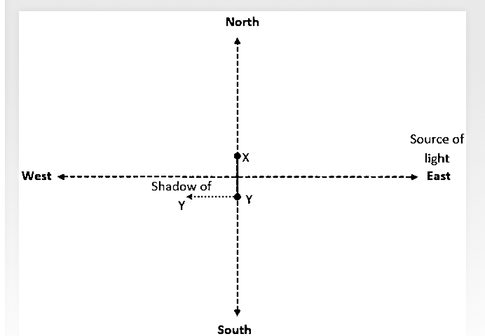 If X faces south then shadow of Y will fall on X’s right side.