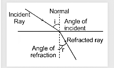- Refraction of Light: The bending of the ray of light passing from one medium to the other medium is called refraction.