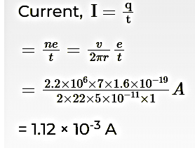 Number of revolutions in 1 second, n=v/2πr; Charge flowing in one second, q = ne
