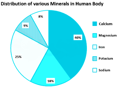 74. Direction: The given pie chart shows the distribution of minerals in the human body. Study the chart carefully and answer the following question.