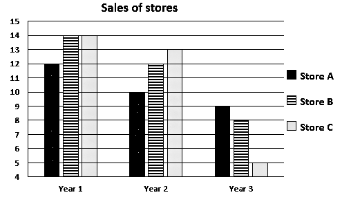 ⇒ Based on given data, the sales of store B and C was more than 13 lakhs in Year 1.