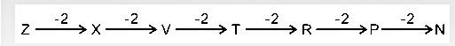 97. Find the next letter in the given series:Z, X, V, T, R, P, ?