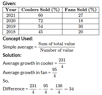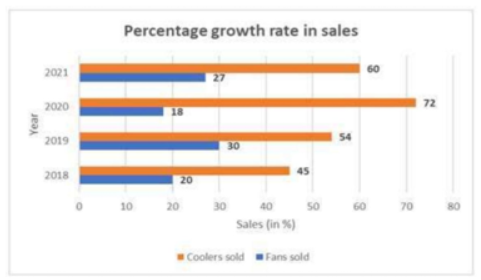 98. The following figure shows the percentage growth in units of fans and coolers sold in some years. What is the difference between the averages of the growth rate in coolers and fans?