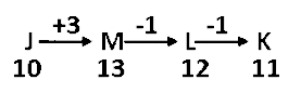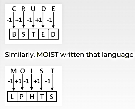 We add three in first letter we get second letter, we subtract one in second letter we get third letter and again we subtract one in third letter we get fourth letter.