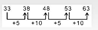 4.Find the next term in the following series. 33, 38, 48, 53, ?