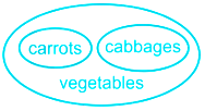 As we know that “carrots” and “cabbages” are “vegetables” but there is no relation between “carrots” and “cabbages”. Thus the best possible venn diagram representing above relation is as follows.