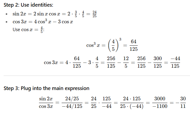 3. If tan x = 3/4, then what is the value of (sin 2x)/(cos 3x)?