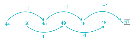 2. Select the number that can come in place of question mark (?) in the following series. 44, 50, 45, 49, 46, 48, ?