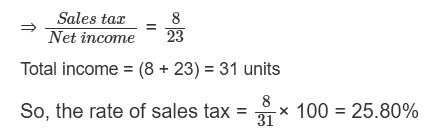 1. If sales tax is increased by 23% and net income of a shopkeeper is decreased by 8%. Find the approximate rate of sales tax.