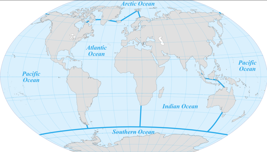 • The Southern Ocean or Antarctica bounds it to the south.